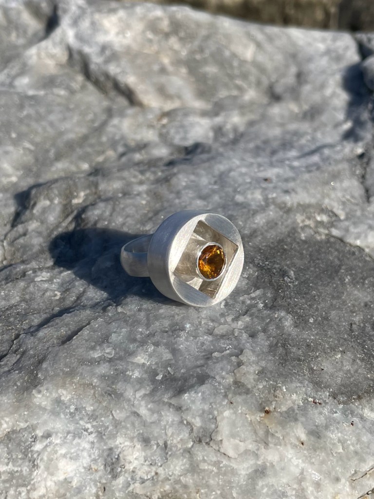 The Crack. Inspired by the Leonard Cohen song, Anthem. In Sterling Silver, 14 Kt Gold with a 4.5mm,AAA Emerald.