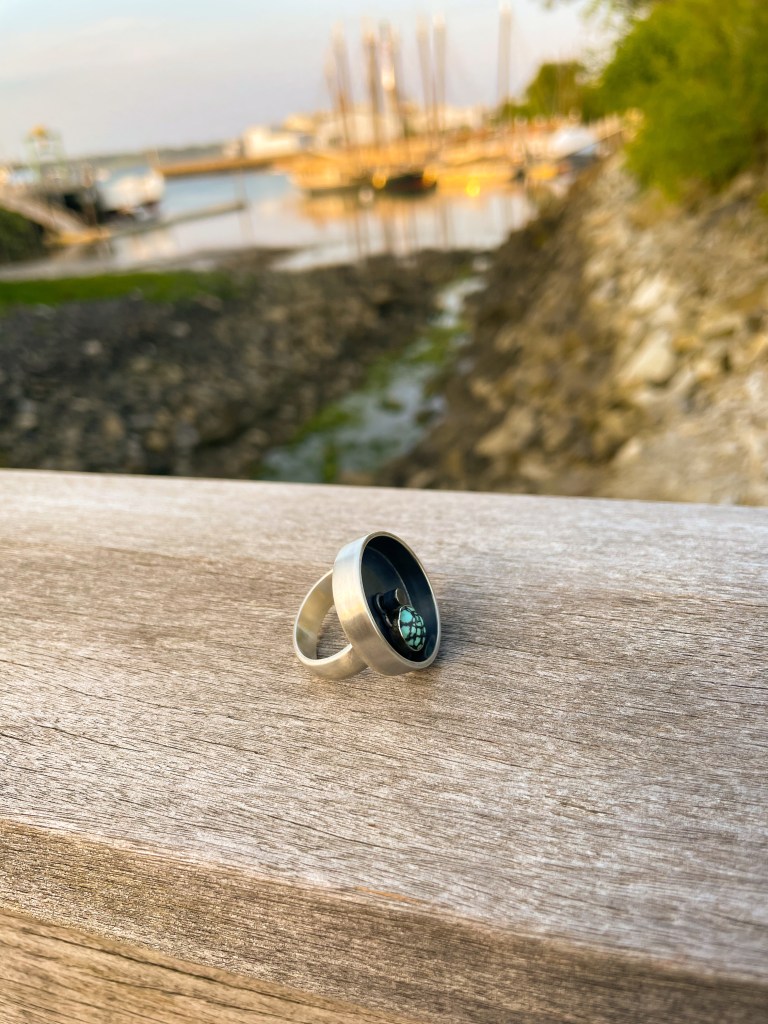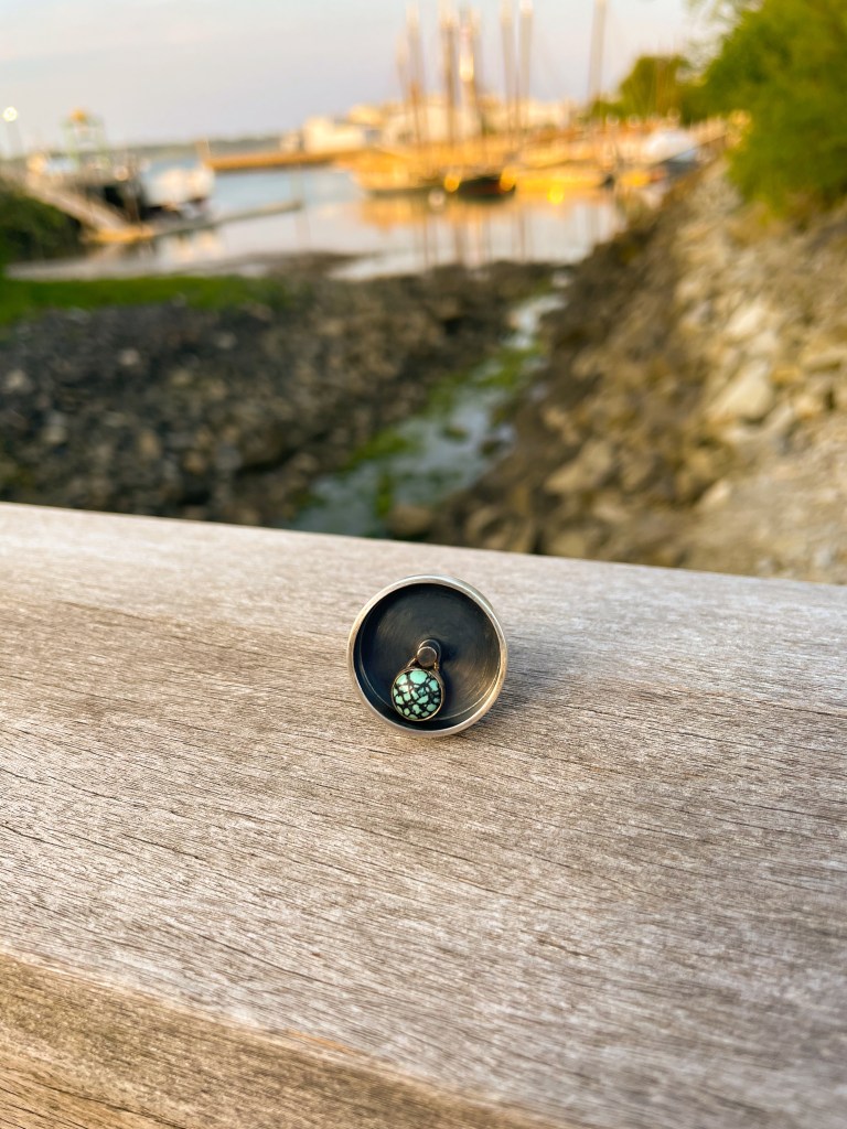 Sterling Silver – Turquoise Ring Handcrafted Sterling Silver ring with a separately mounted 7.9mm spider torquoise stone.
