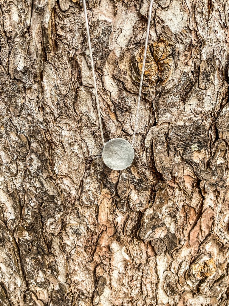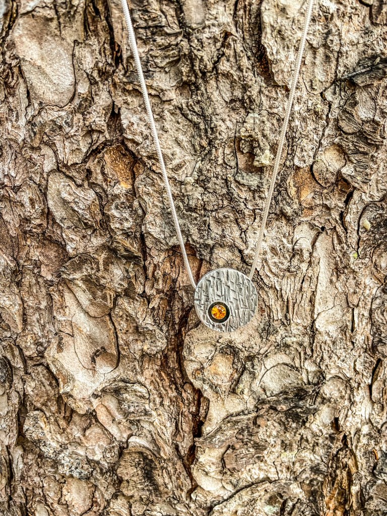 Women’s hollow form Pendant Sterling Silver pendant with a 5mm AA quality Citrine mounted in a 14kt gold bezel.