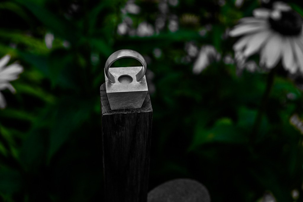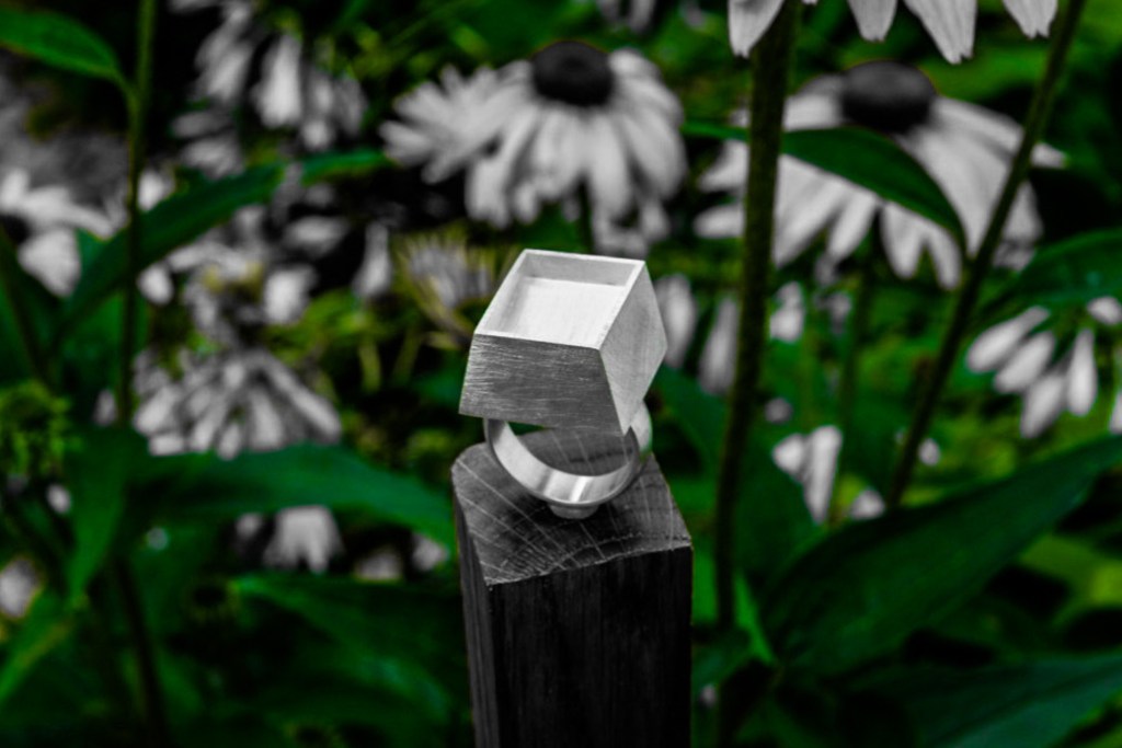 The box in this handcrafted, architectural style ring, is the vessel, in other words, you.